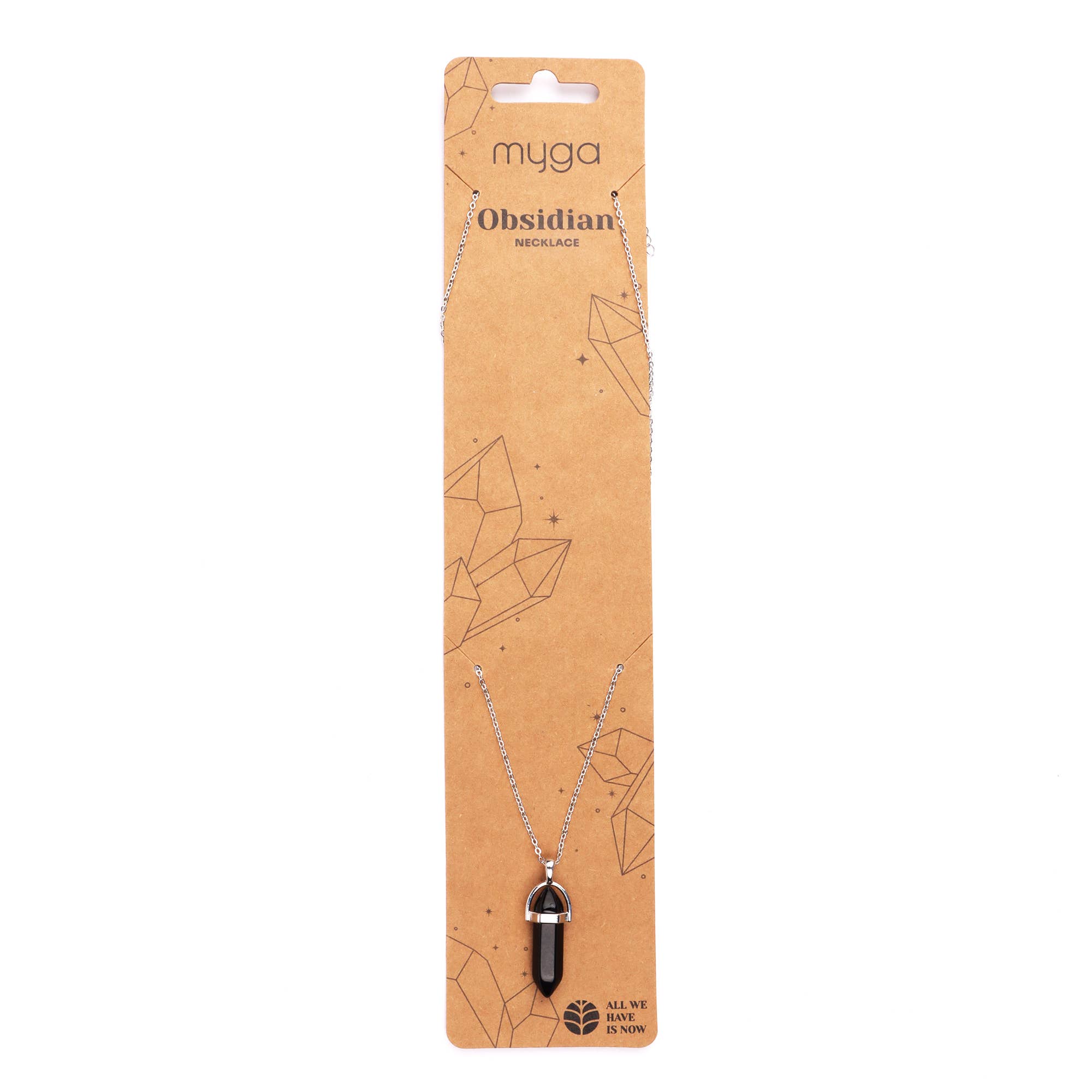 Myga Eco - Silver Plated Necklace - Obsidian Pendant