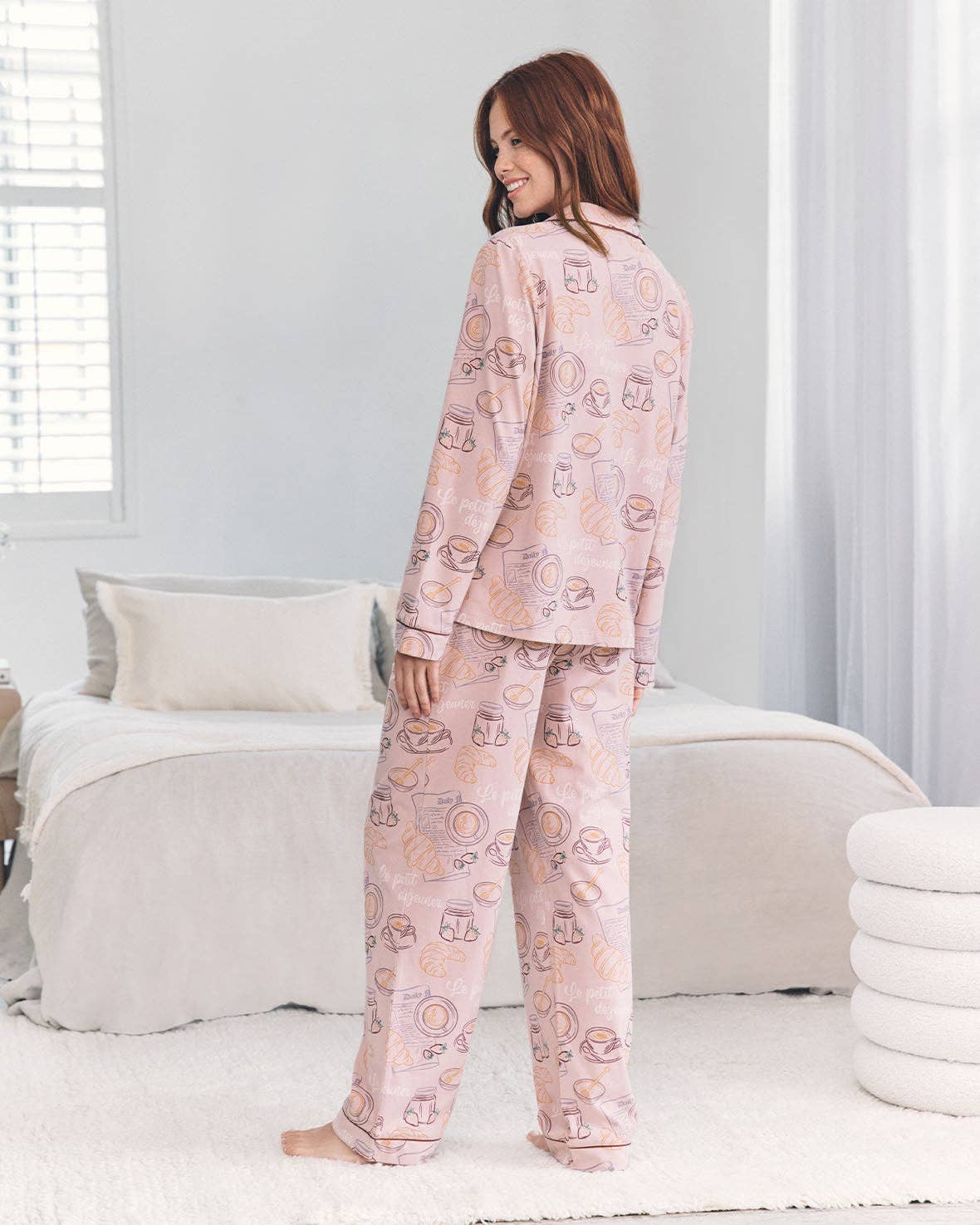 Chelsea Peers - Organic Cotton Breakfast Print Long Pyjama Set - Pink